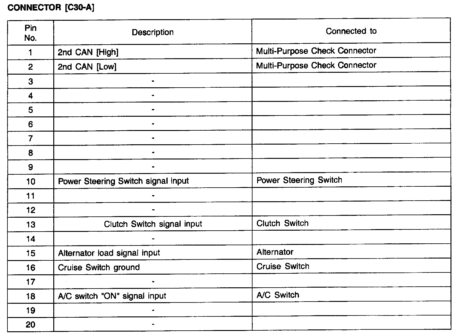 PCM TERMINAL INPUT/OUTPUT SIGNAL - CONNECTOR [C30-A]