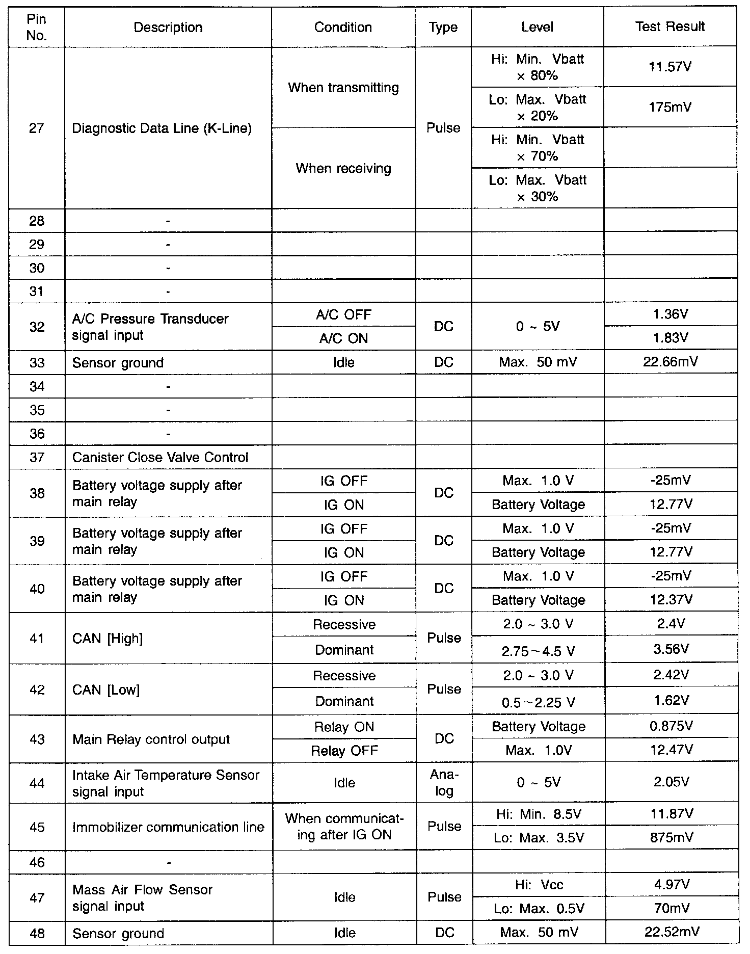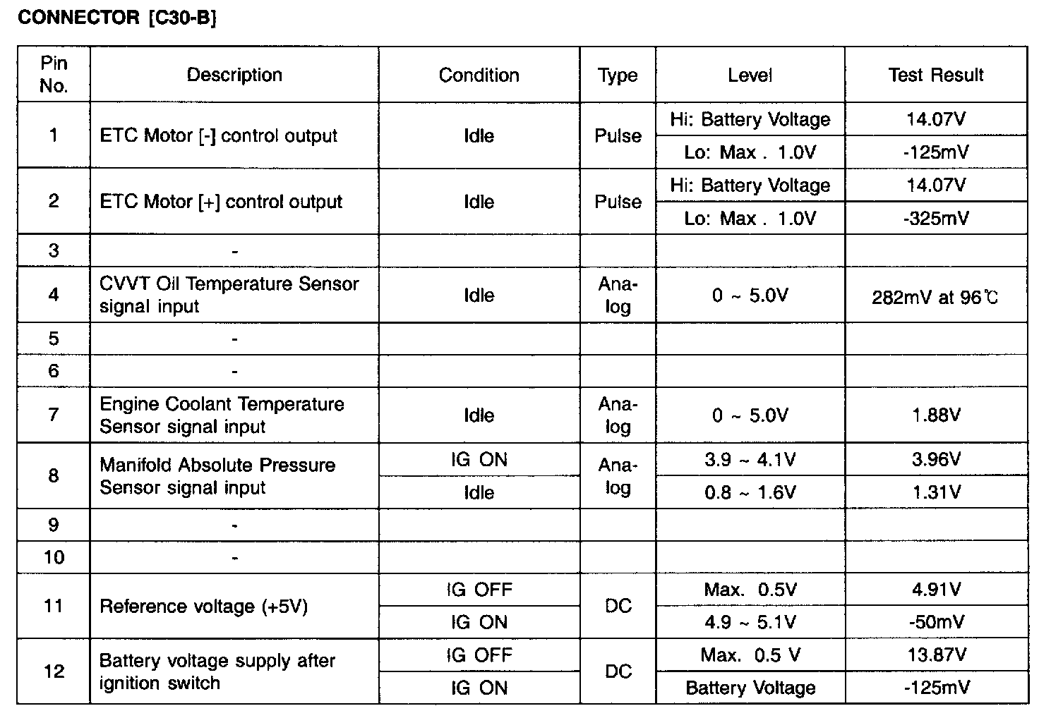 PCM TERMINAL INPUT/OUTPUT SIGNAL - CONNECTOR [C30-B]