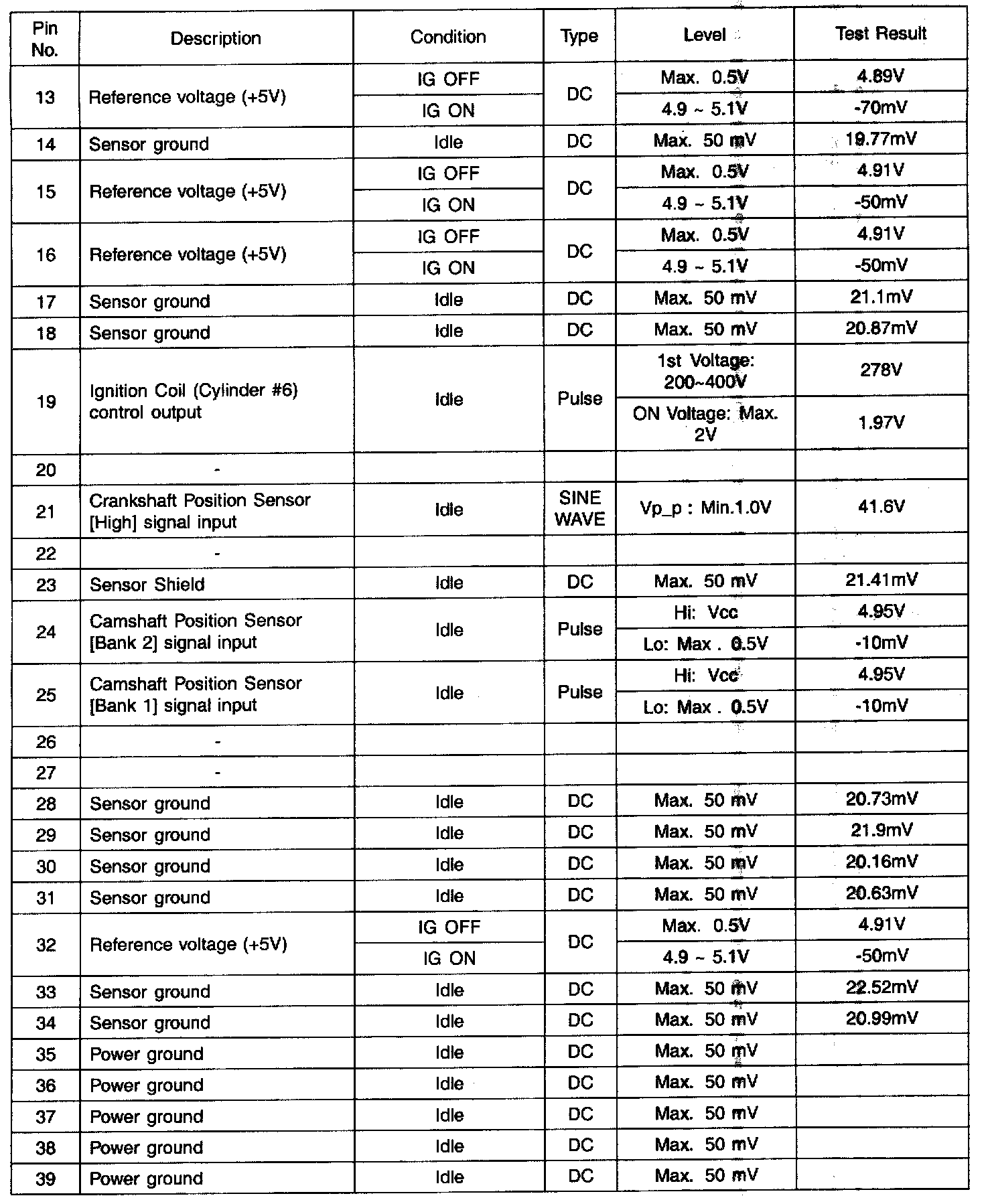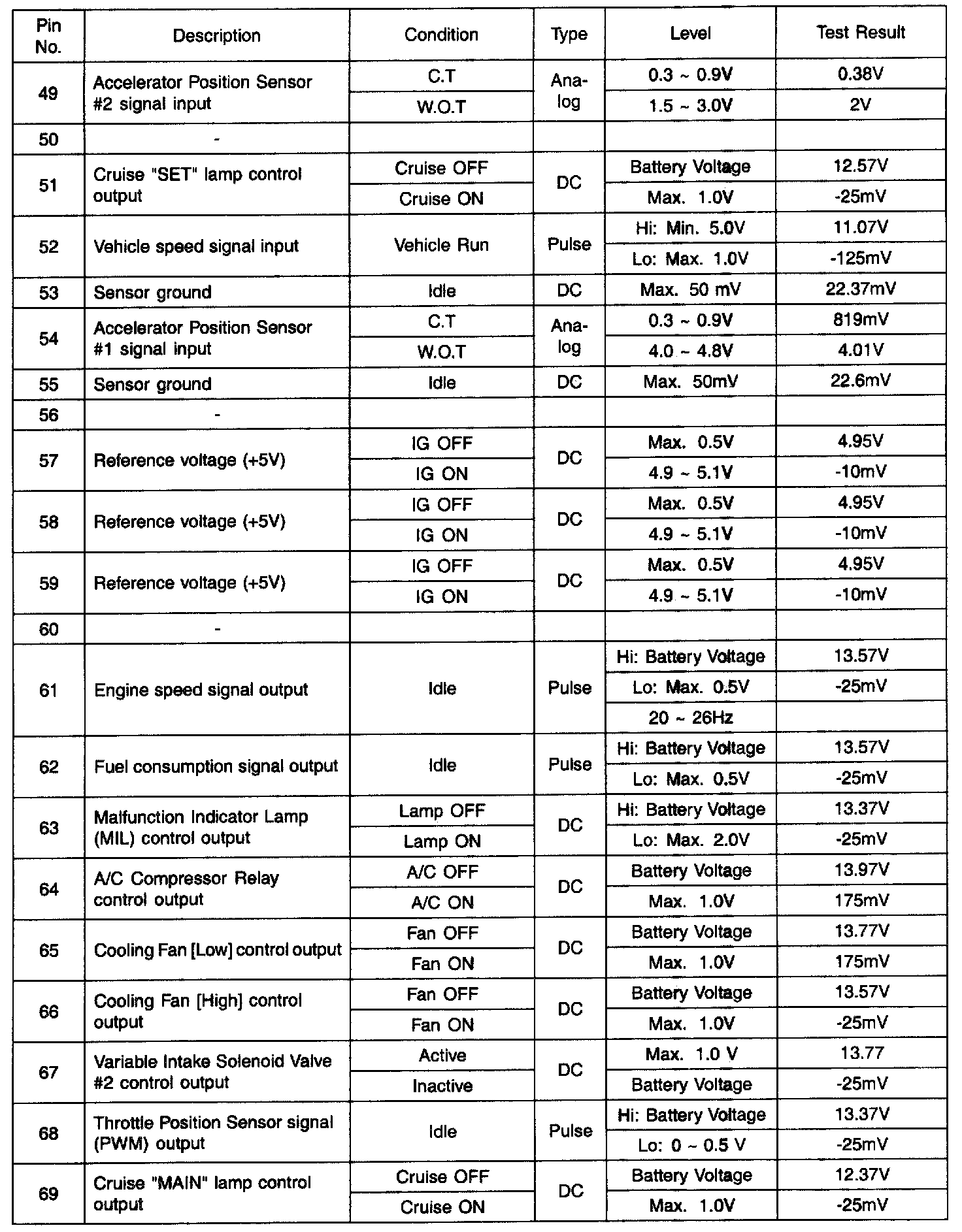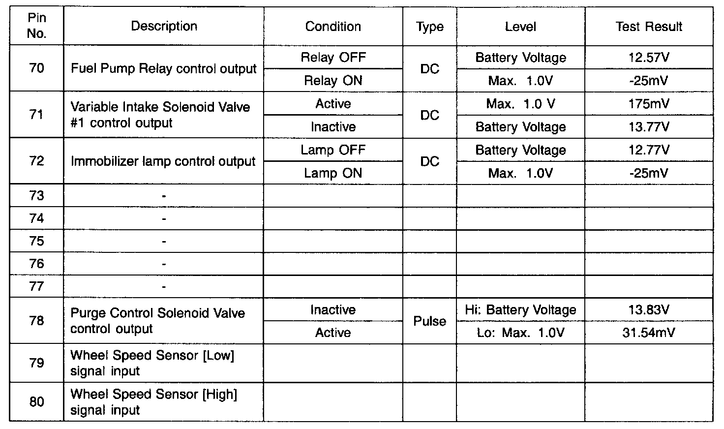 PCM Terminal Input/Output Signal - Connector (C30-A) Part 2: