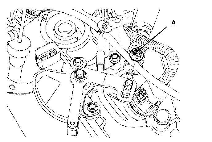 7. Remove the shift cable mounting nut (A).