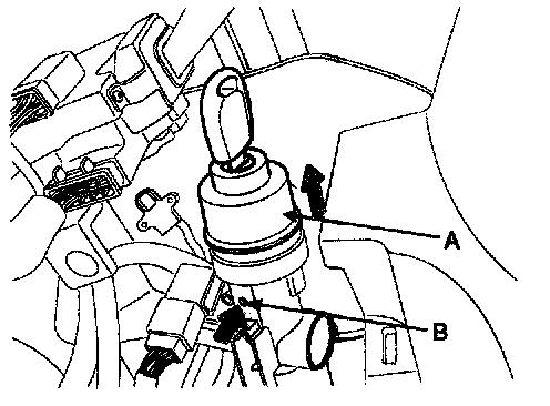 6. If it is necessary to remove the key lock cylinder (A), Remove the key lock cylinder (A) after pushing lock pin (B) with key ACC.