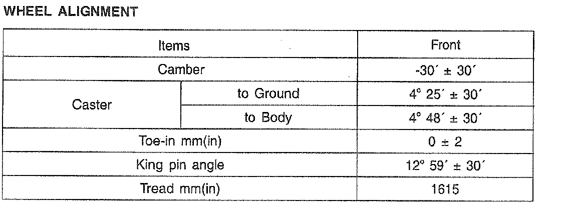 Front Wheel Alignment Specifications