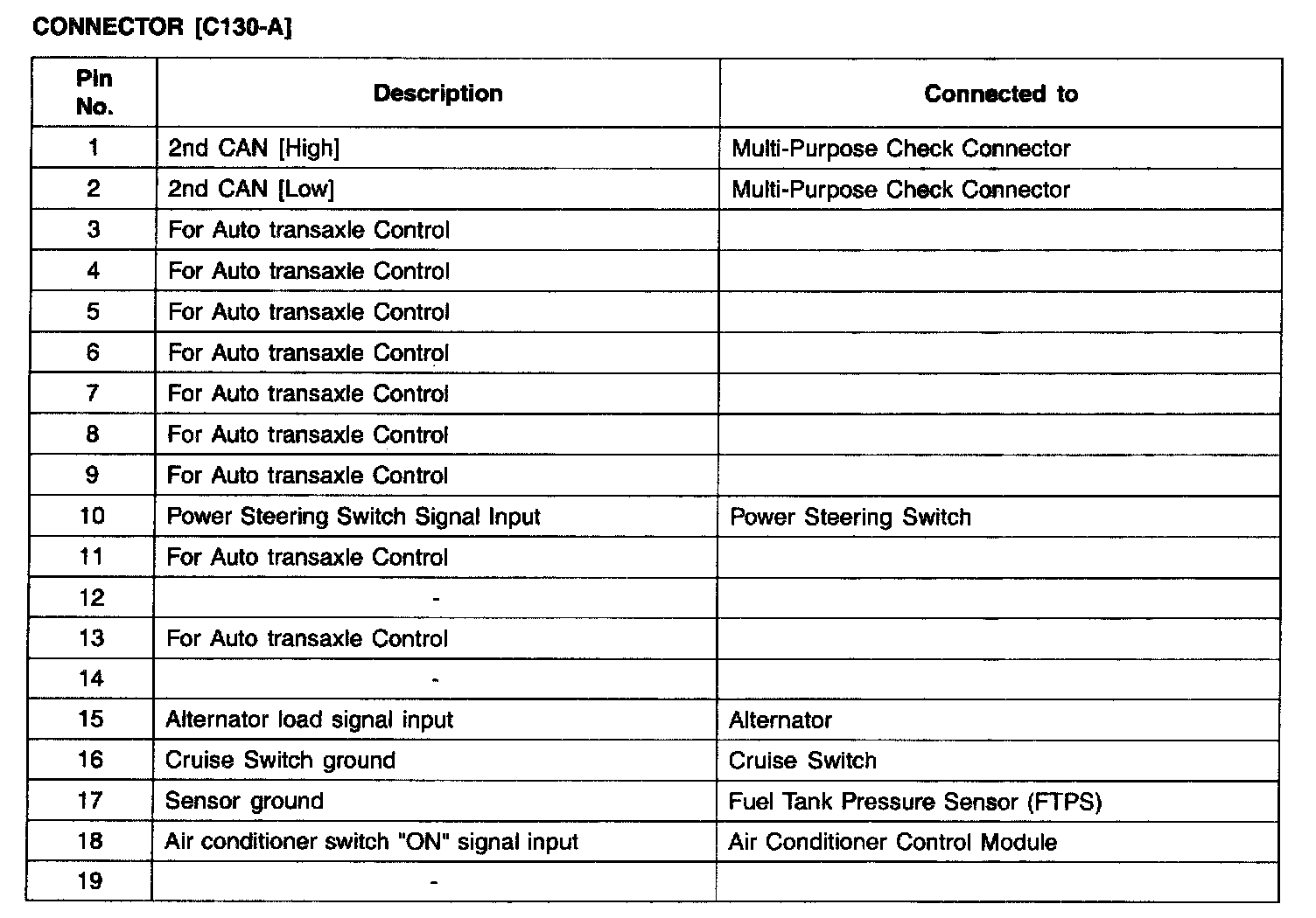 PCM Terminal Function - Connector (C130-A) Part 2: