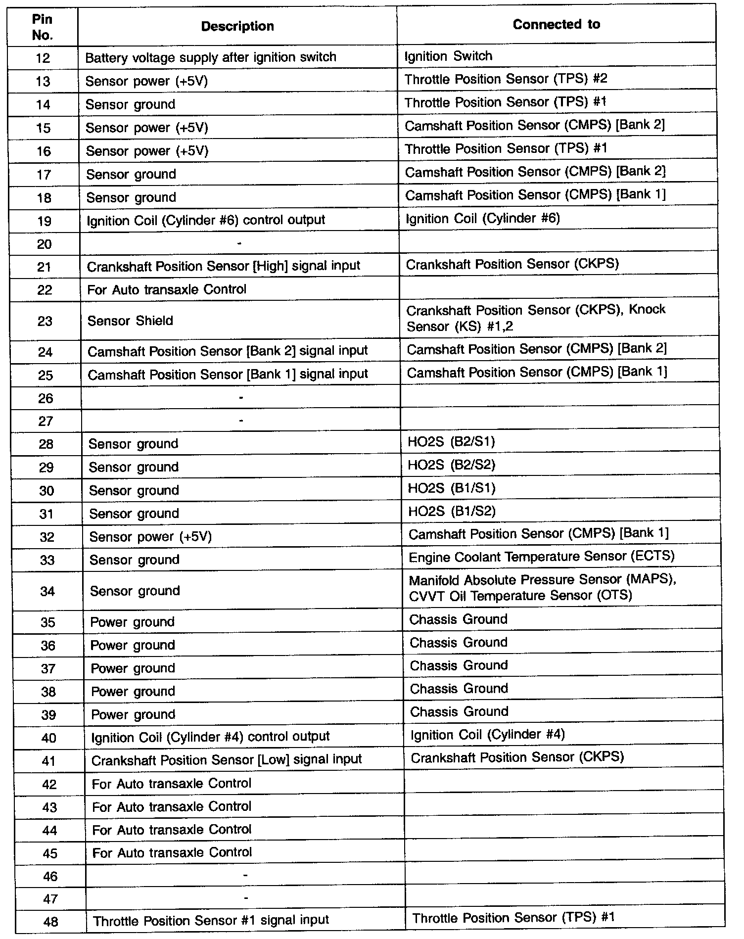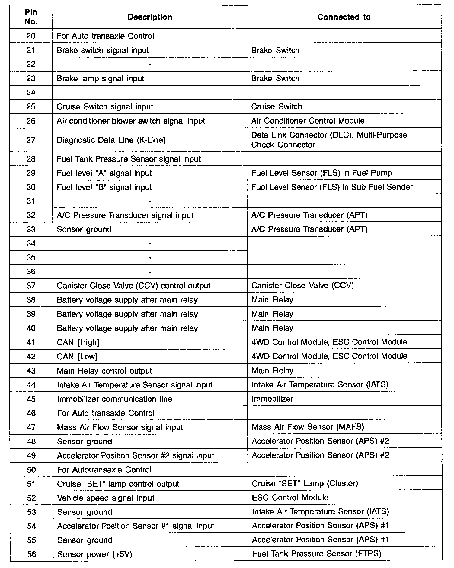 Home >> Hyundai >> 2007 >> Santa Fe FWD V6-3.3L >> Repair and Diagnosis >> Powertrain Management >> Computers and Control Systems >> Engine Control Module >> Diagrams >> Connector Views