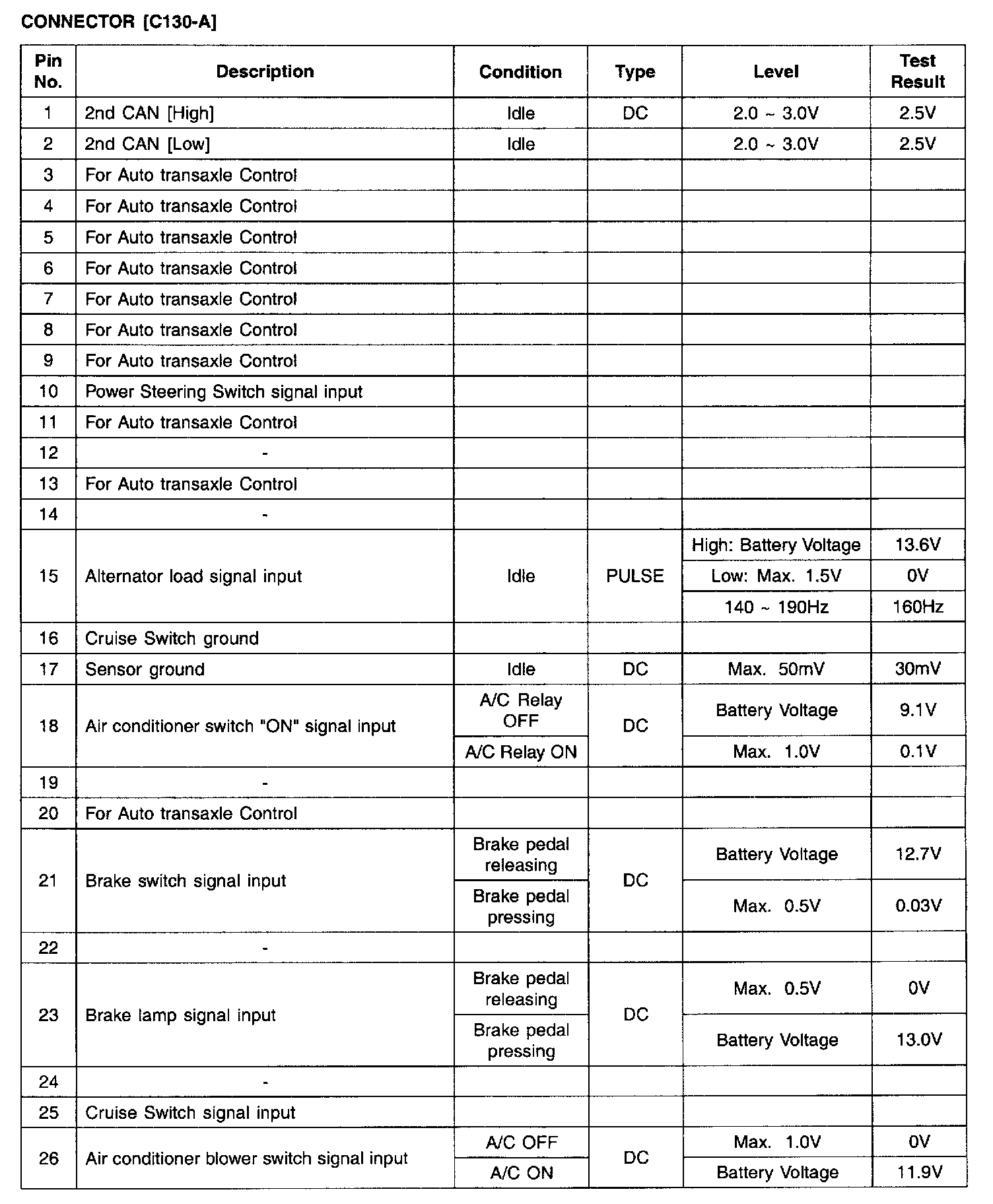 PCM TERMINAL INPUT/OUTPUT SIGNAL - CONNECTOR [C130-A]
