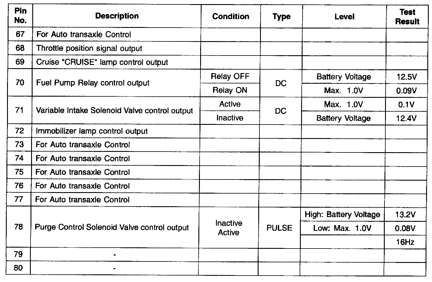 PCM Terminal Input/Output Signal - Connector (C130-A) Part 2: