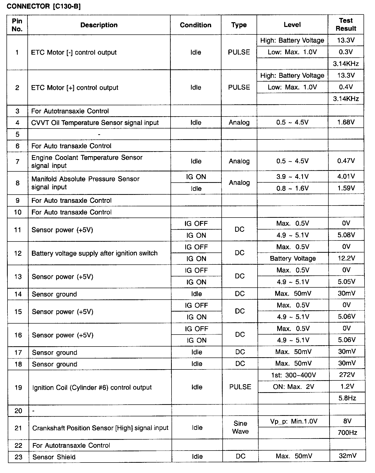 PCM Terminal Input/Output Signal - Connector (C130-B) Part 3: