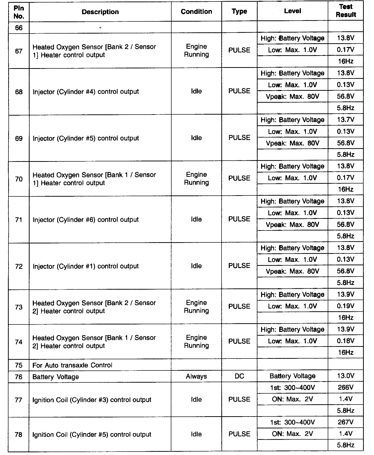 PCM Terminal Input/Output Signal - Connector (C130-A) Part 3: