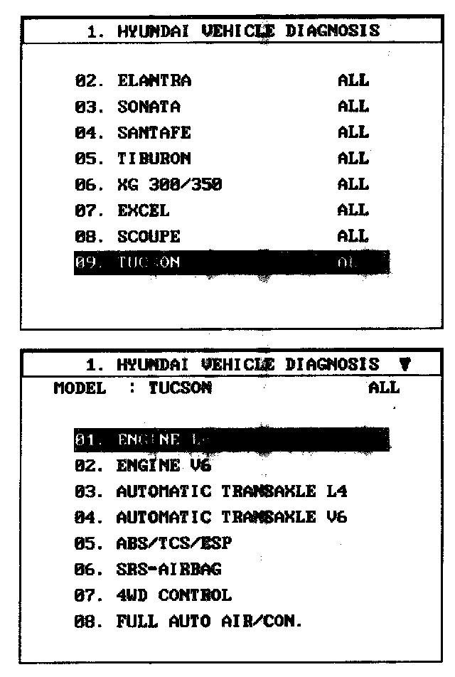1. Select "Vehicle" and "Engine" (For example, TUCSON 2.0L L4).