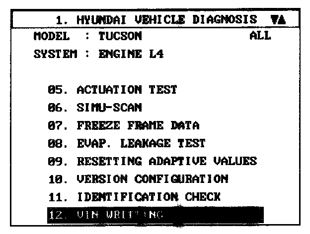 2. Select "VIN WRITING"