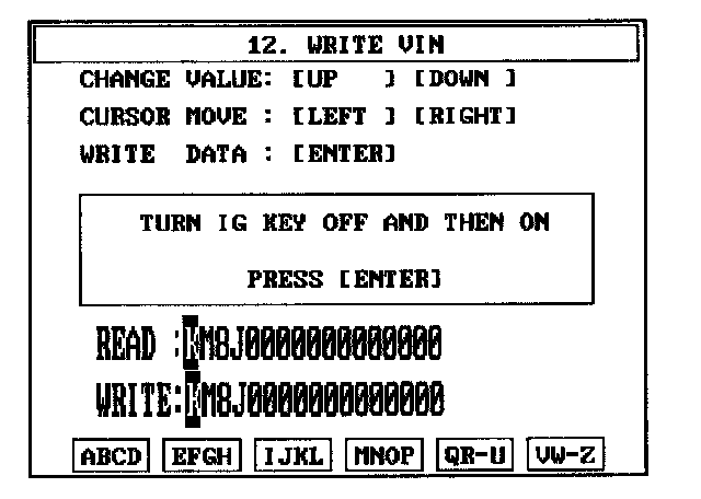 4. Write the VIN with cursor, function and number keys.
