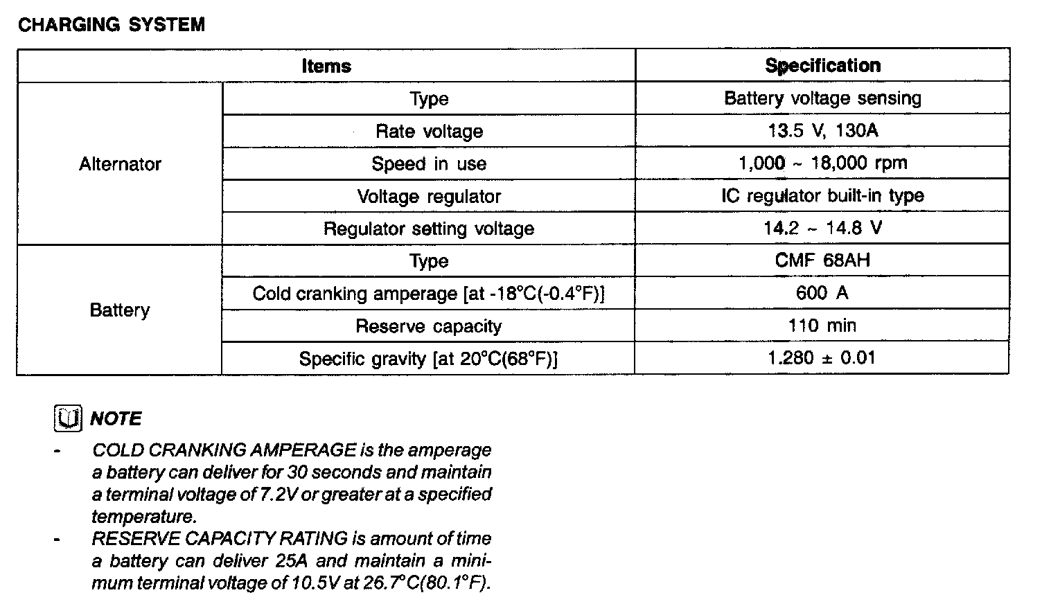 Charging System - Specification: