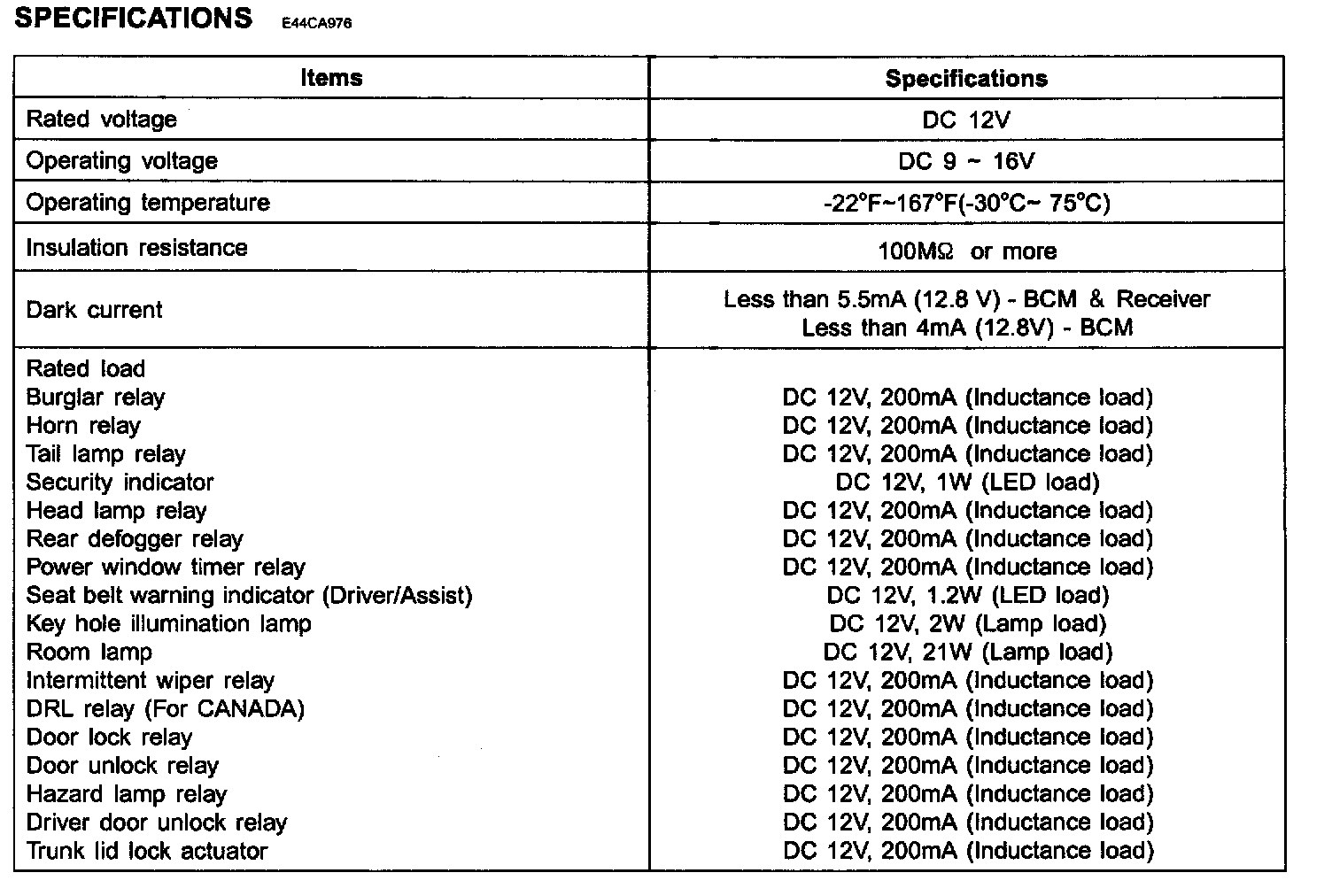 Body Control Module: Specifications