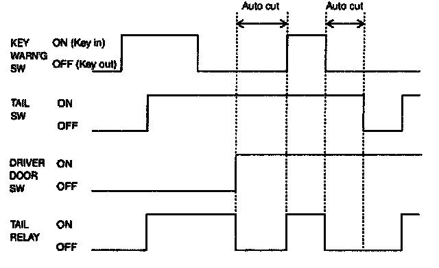 3. When the tail lamp is cut automatically and the tail lamp switch is turned OFF and ON, the tail lamp illuminates and auto cut function is cancelled.