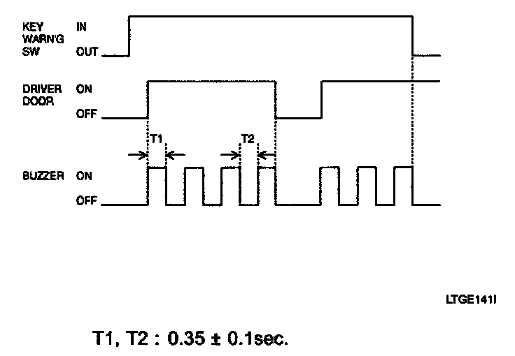 1. If the key is in the key cylinder and the driver door is opened, the buzzer is sounded (period: 0.7 sec., duty rate: 50%).
