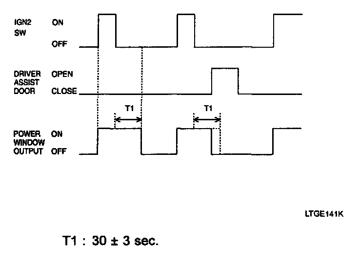 2. Related to Step 1), if the driver's door or assist door is opened, window power output is turned OFF immediately.
