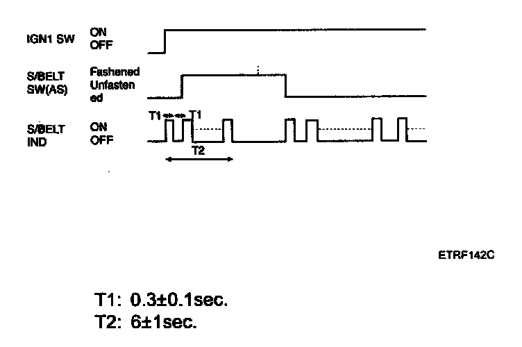 1. Warning lamp lights every 0.6sec and buzzer sounds every 1sec for 6 sec when IGN is ON under unfastened seat belt.