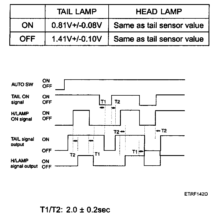 12. The condition of head lamp ON/OFF is same as the one of tail lamp ON/OFF at auto light switch ON. Light ON value of the input sensor is based on the table.