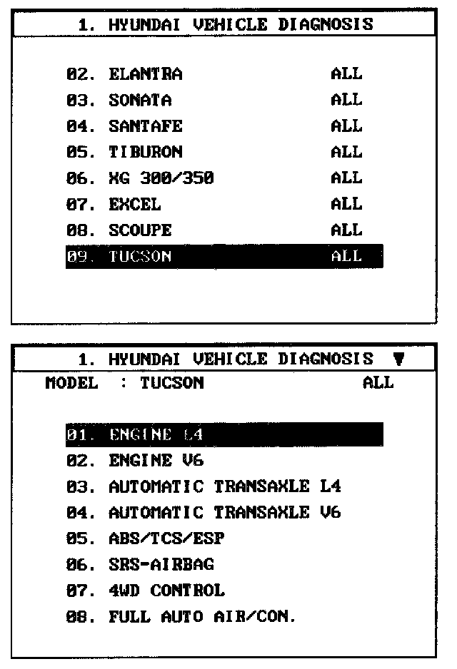 1. Select "Vehicle" and "Engine" (For example, TUCSON 2.0L L4).