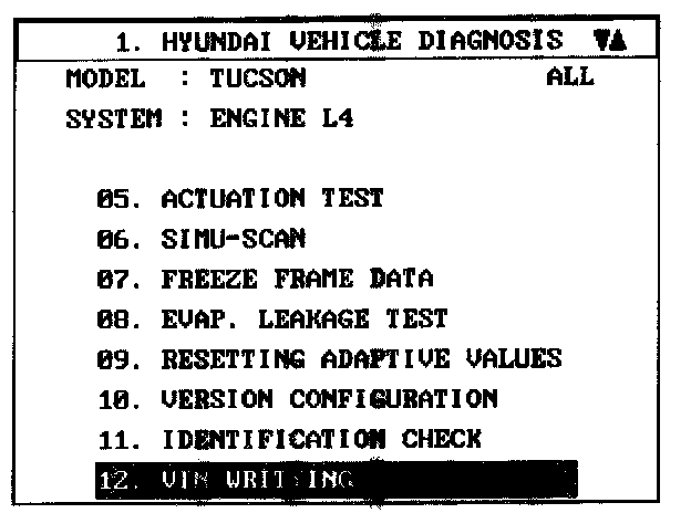 VIN PROGRAMMING PROCEDUREVIN (Vehicle Identification Number) is a number that has the vehicle's information (Maker, Vehicle Type, Vehicle Line/series, Body Type, Engine Type, Transmission Type, Model Year, Plant Location and so forth. For more information, please refer to the group "GI" in this SERVICE MANUAL). When replacing an ECM, the VIN must be programmed in the ECM. If there is no VIN in ECM memory, the fault code (DTC P0630) is set.