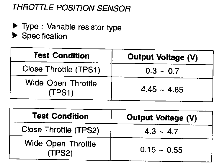Throttle Position Sensor (TPS) - Specification: