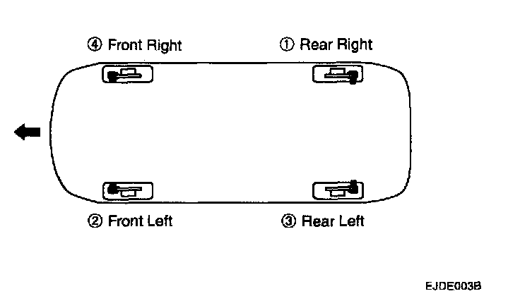 4. Repeat the procedure for each wheel in the sequence shown below until air bubbles no longer appear in the fluid.