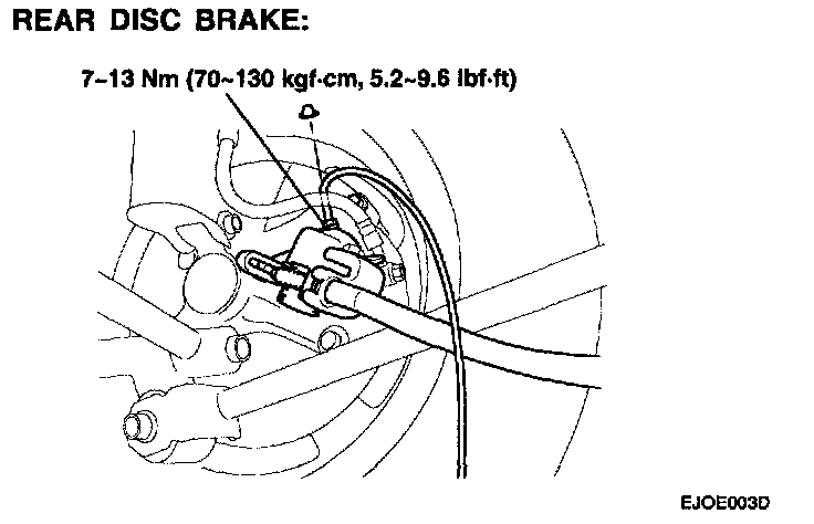 3. Loosen the right-rear brake bleed screw to allow air to escape from the system. Then tighten the bleed screw securely.