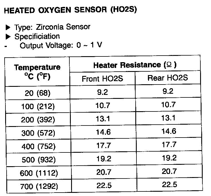 Heated Oxygen Sensor(HO2S) - Specification: