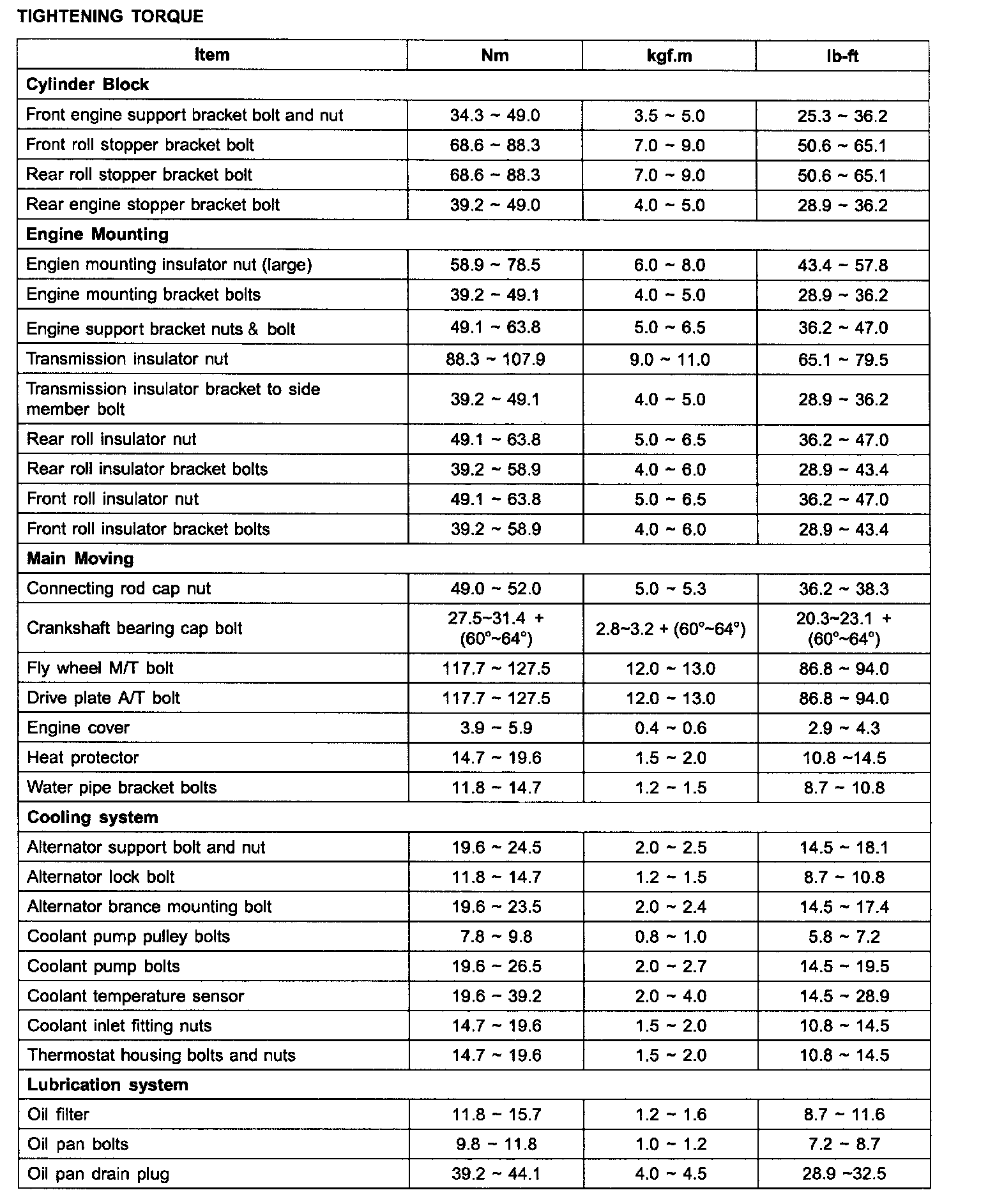 TIGHTENING TORQUE: