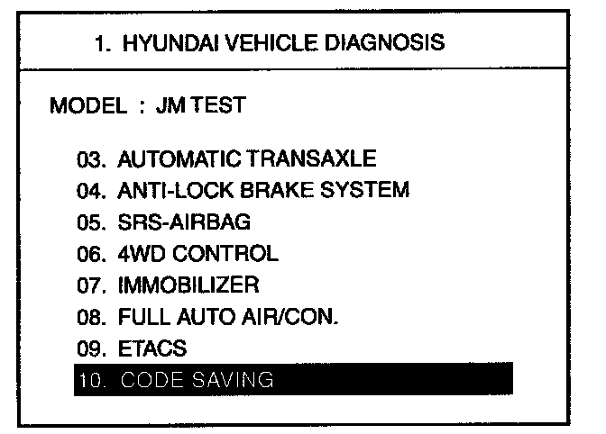 3. After selecting "CODE SAVING" menu, button "ENTER" key, then the screen will be shown as above.