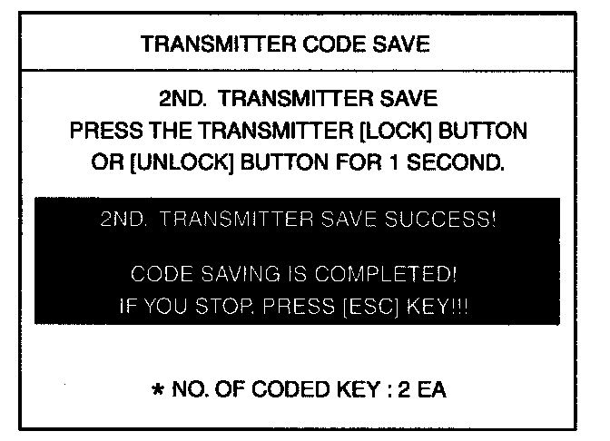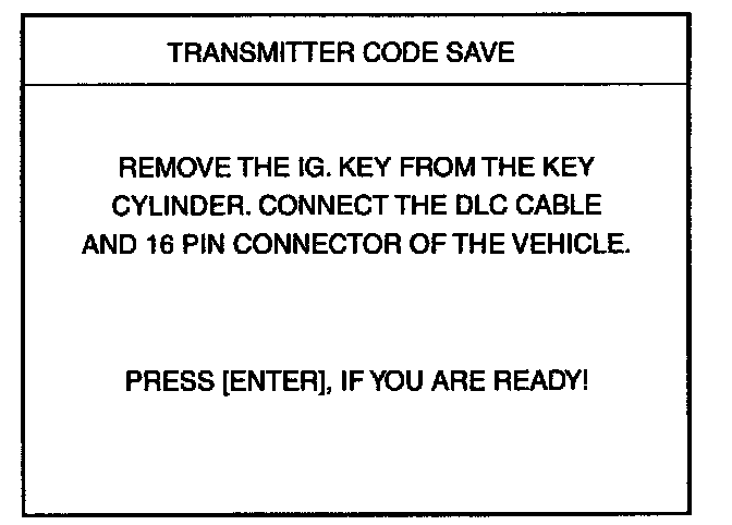 4. After removing the ignition key from key cylinder, push "ENTER" key to proceed to the next mode for code saving.