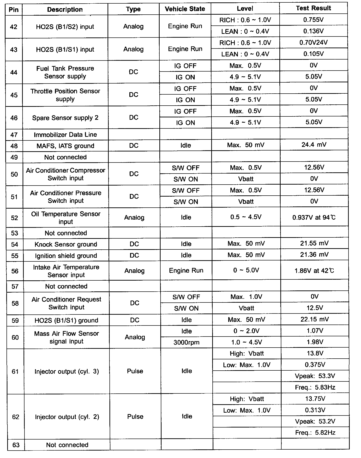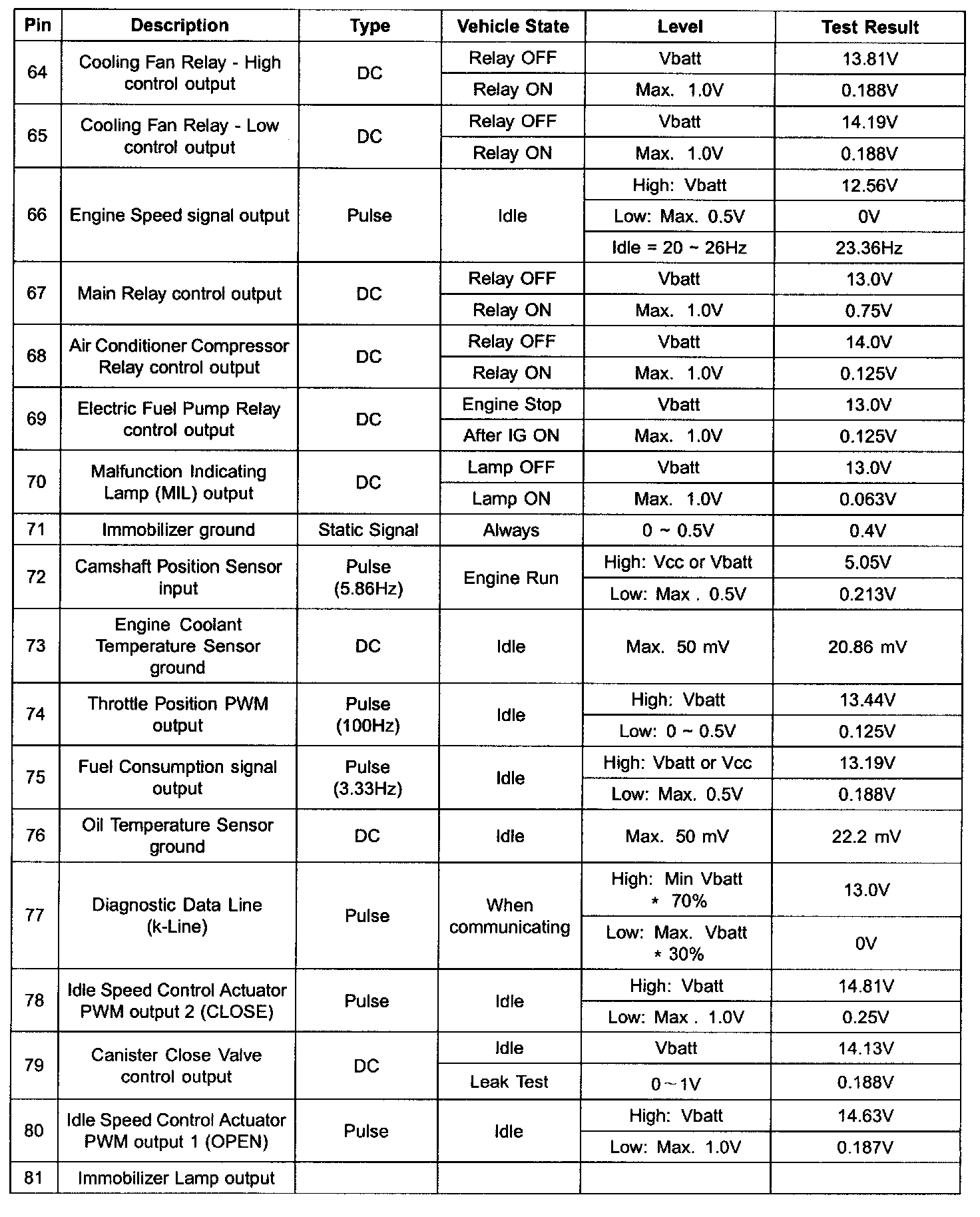 ECM Terminal Input/Output Signal (Part 3):
