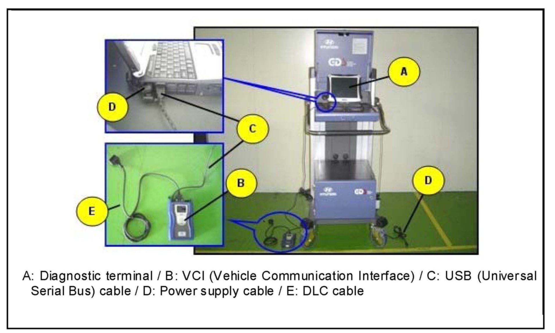 2. Connect the USB cable between the VCI and the diagnostic terminal.