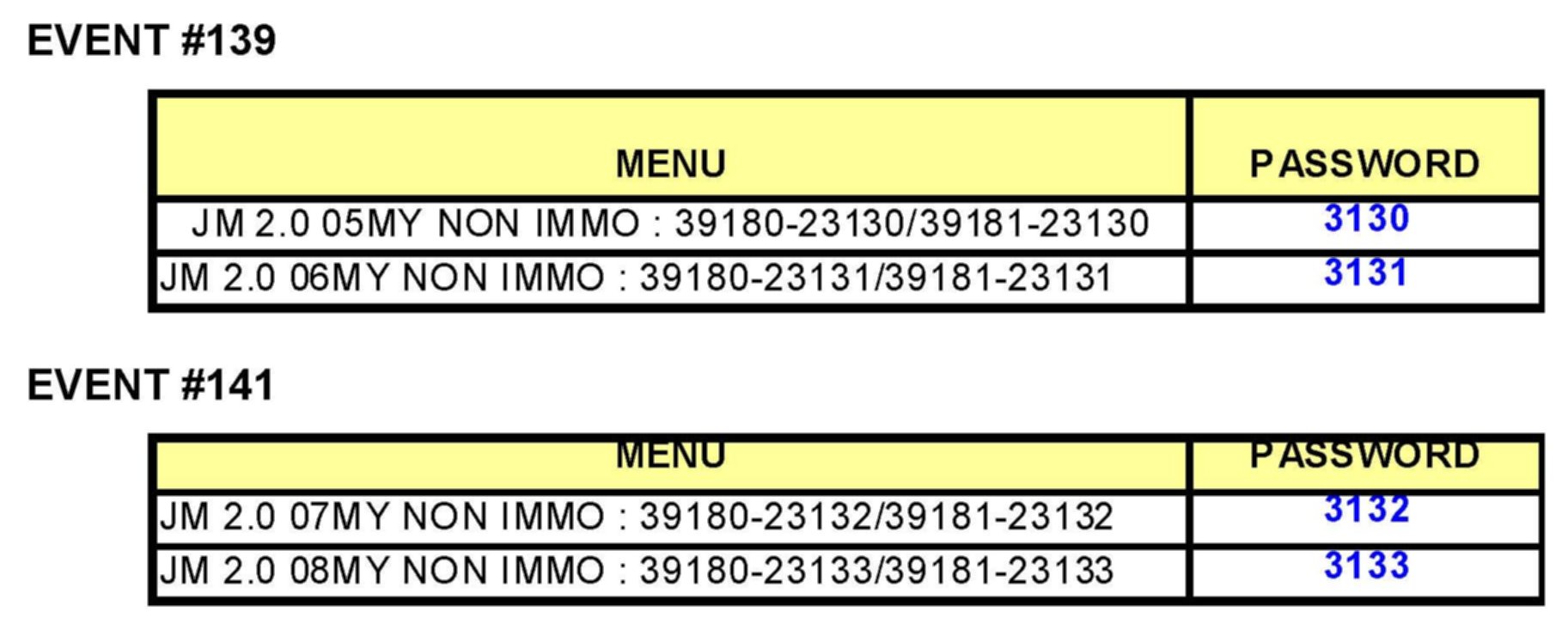 7. After the Current ROM ID is displayed, select the appropriate Update Event between "#139 and #141."