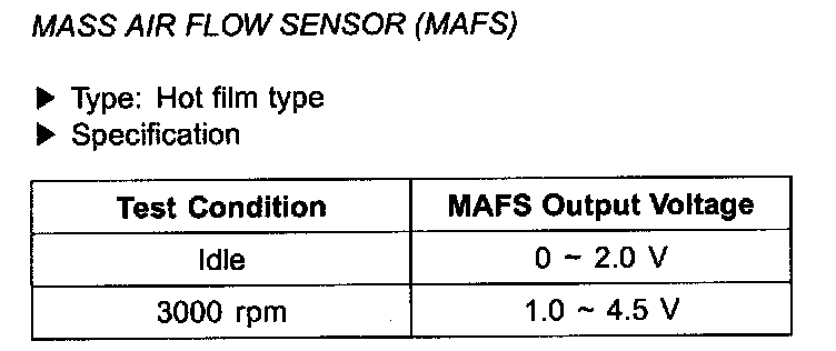 Mass Air Flow Sensor (MAFS) - Specifications: