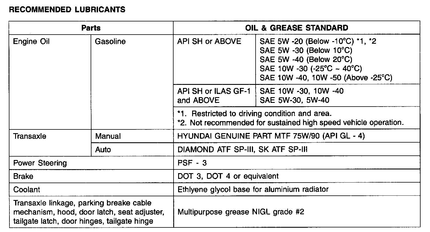 Home >> Hyundai >> 2007 >> Tucson FWD L4-2.0L >> Repair and Diagnosis >> Specifications >> Fluid Type Specifications >> General Fluid Specifications