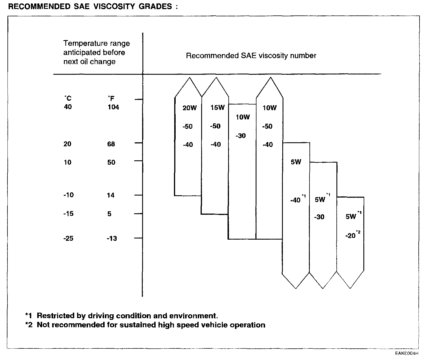 RECOMMENDED SAE VISCOSITY GRADES