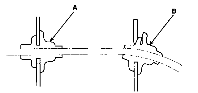 6. Seat grommets in their grooves properly (A). Do not leave grommets distorted (B).