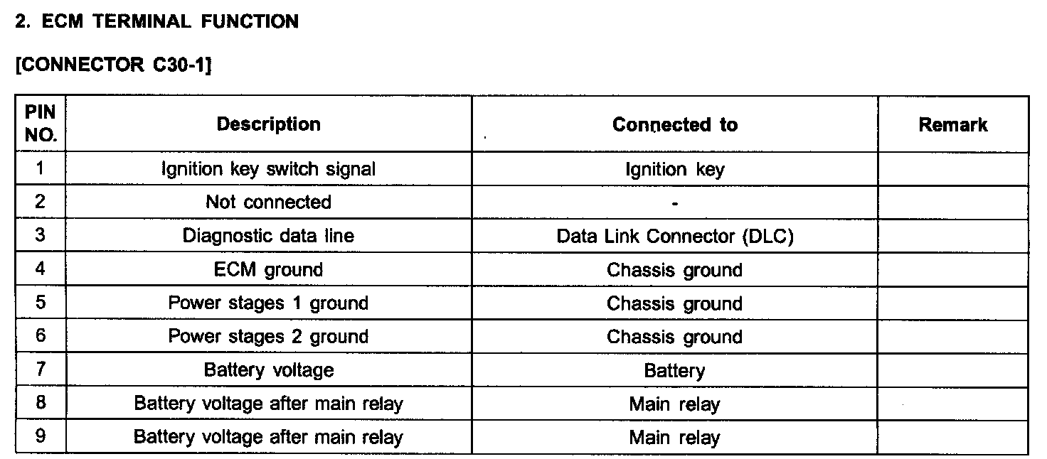 ECM Terminal Function - [Connector C30-1]: