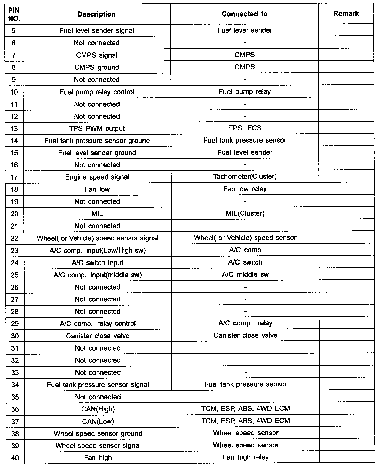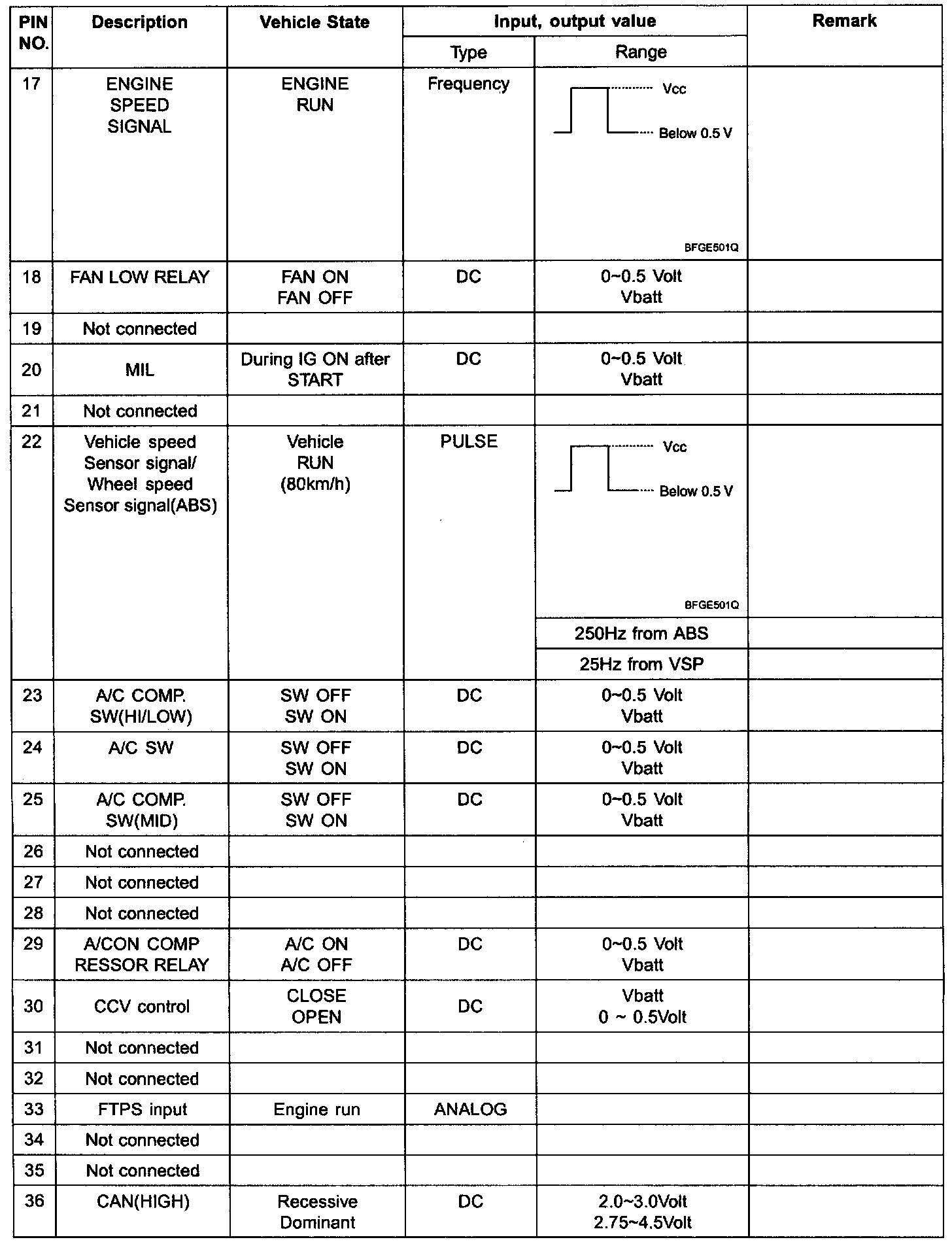 3. ECM TERMINAL INPUT/OUTPUT SIGNAL