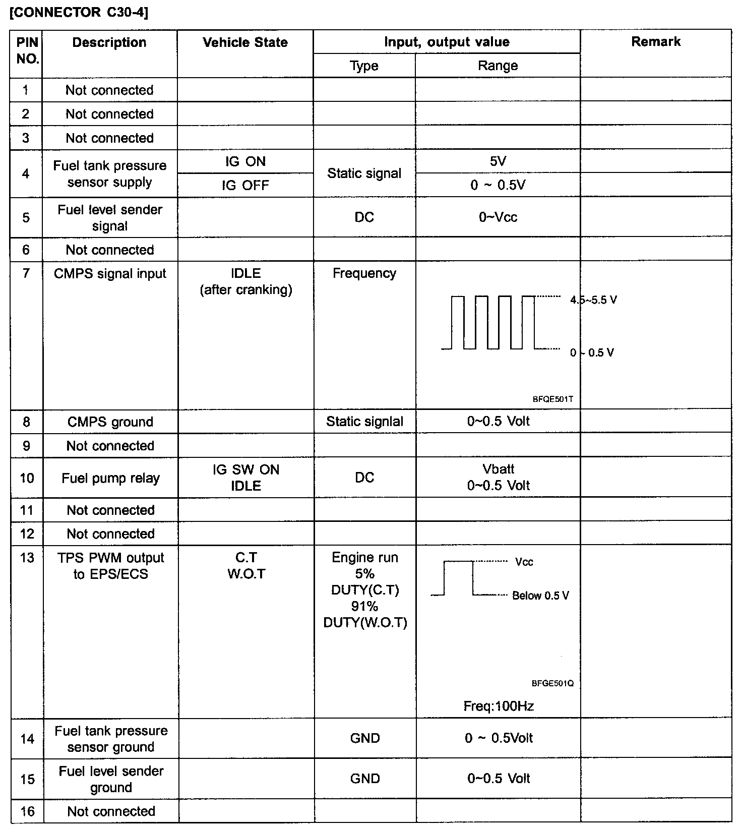 ECM Terminal Input/Output Signal [Connector C30-1]: