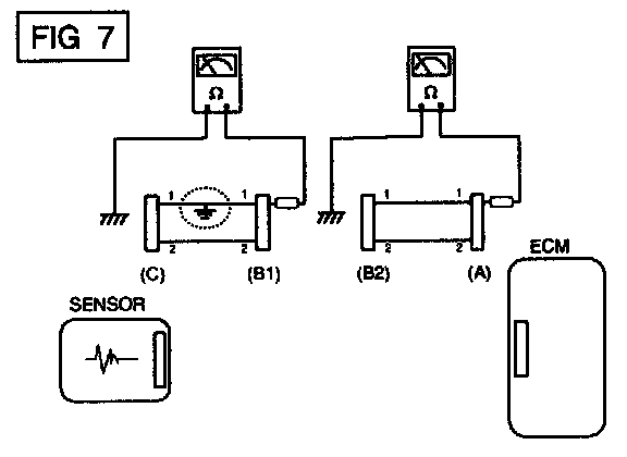 a. Disconnect connectors (A), (C) and measure for resistance between connector (A) and Chassis Ground as shown in (FIG. 6].