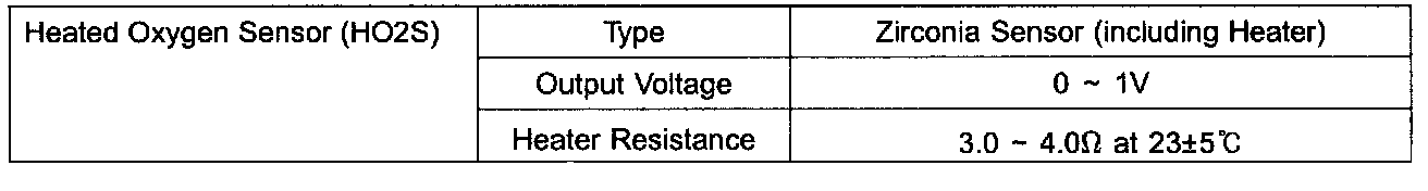 Heated Oxygen Sensor (HO2S) - Specifications: