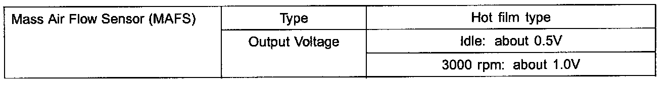 Mass Air Flow Sensor (MAFS) - Specifications: