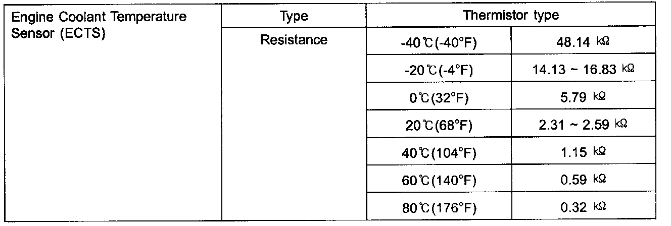 Engine Coolant Temperature Sensor (ECTS) - Specifications: