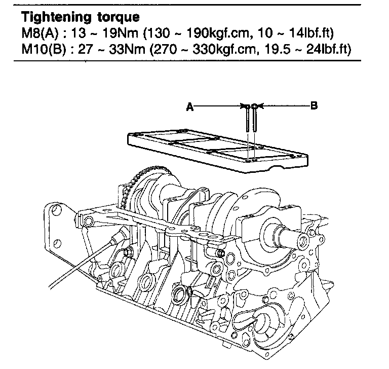 M10 (B) 27 - 33 Nm (270 - 330 kgf-cm, 19.5 - 24 ft. lbs.)