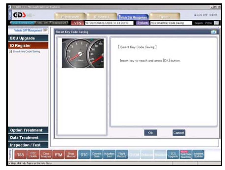 4. Insert the 1st Smart Key into the ignition switch (MSL) and press OK.