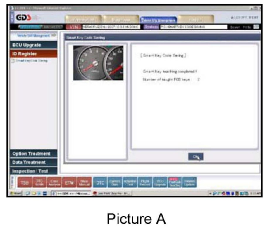 9. A screen showing that the Smart Key Teaching has been completed will open (Picture A) and it will show how many Smart Keys have been taught. This information can also be found in the Current Data Screen (Picture B).
