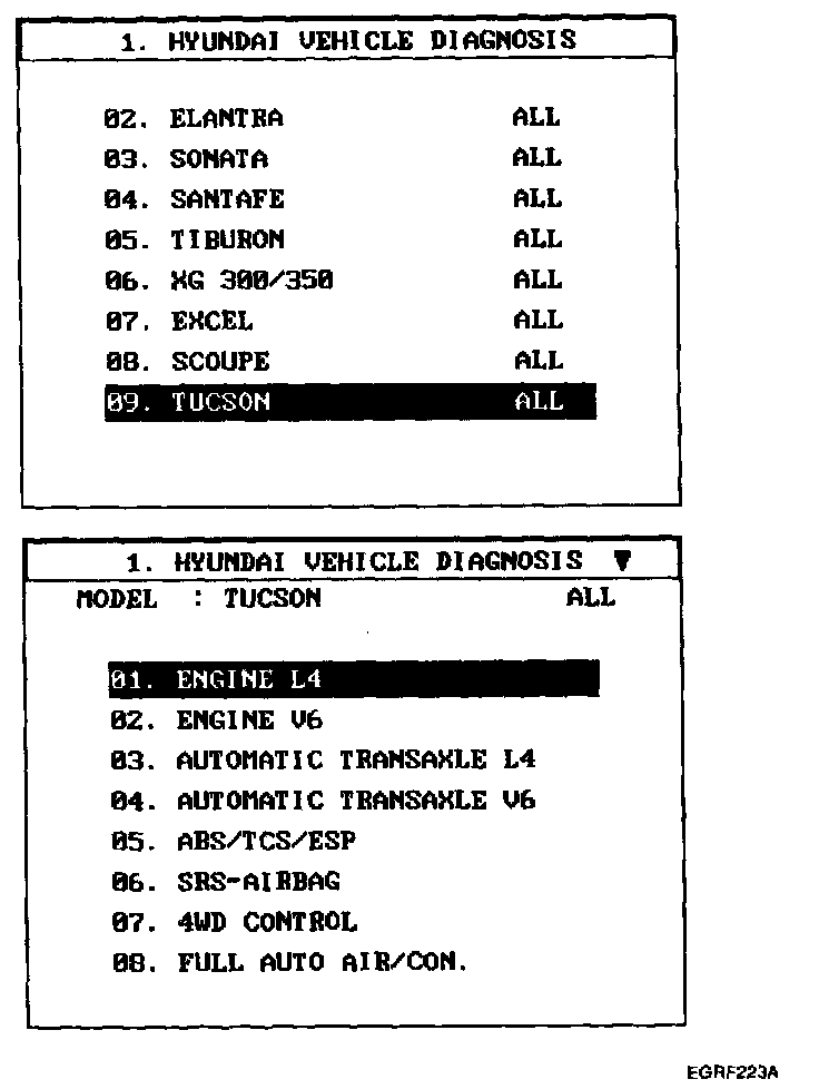 1. Select "Vehicle" and "Engine" (For example, TUCSON 2.0L L4..