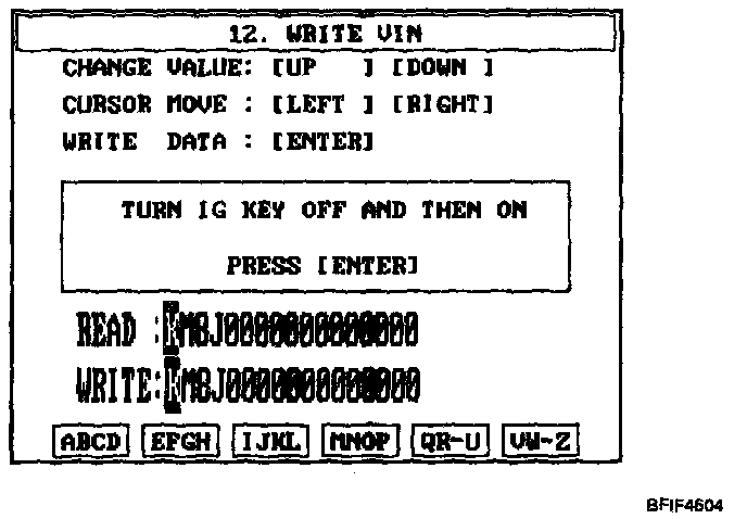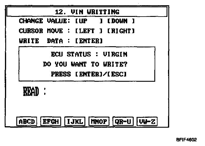 CAUTION: The programmed VIN cannot be changed. When writing the VIN, confirm the VIN carefully.